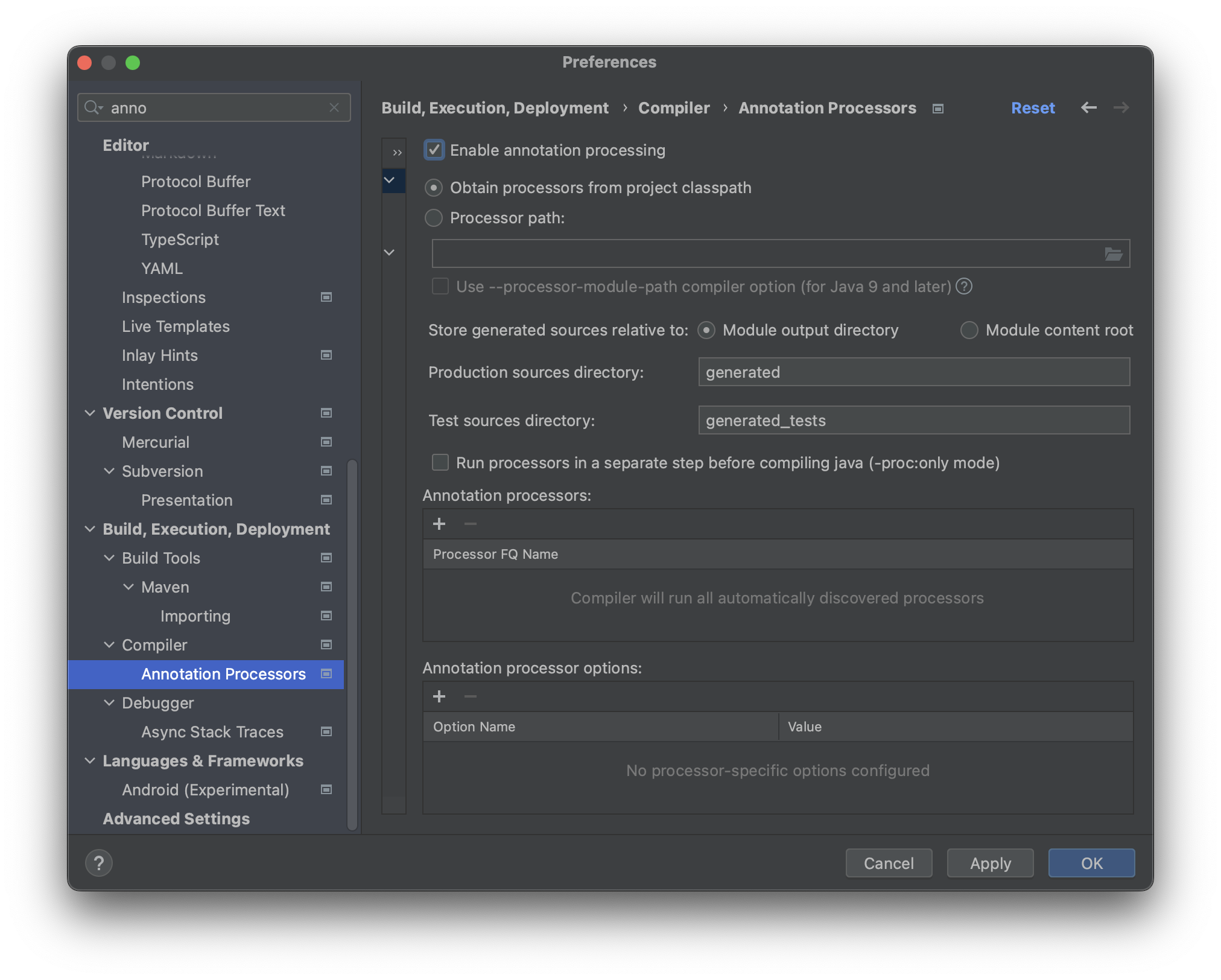annotaionProcessor는 컴파일 시점에 Annotation 기반으로 코드를 변경하거나 생성하는 방법을 말합니다.