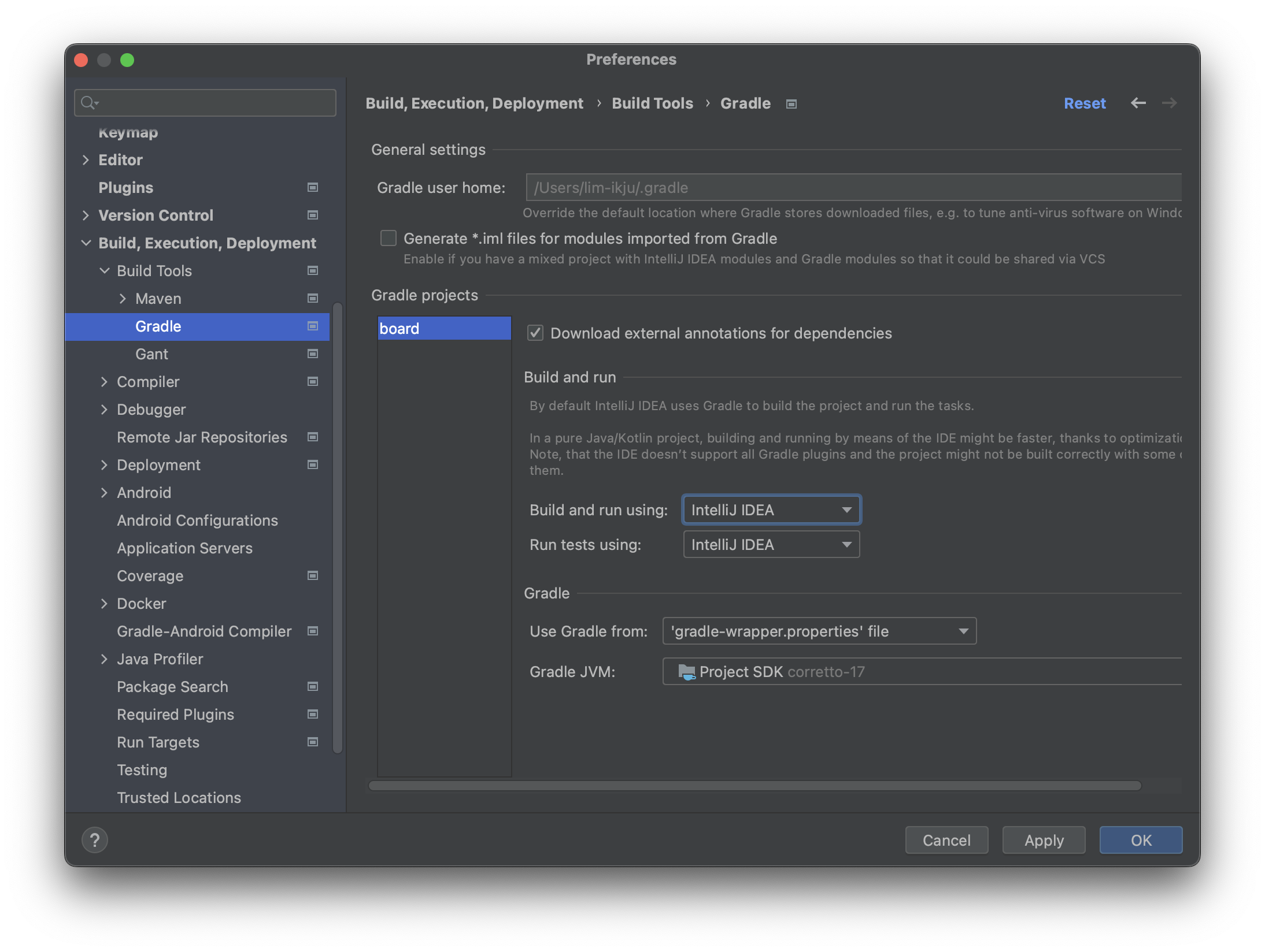 Gradle로 설정할 경우 실행을 Gradle에게 위임하기 때문에 시간이 조금 더 걸린다고들 하는데 저는 체감이 잘 안됩니다.