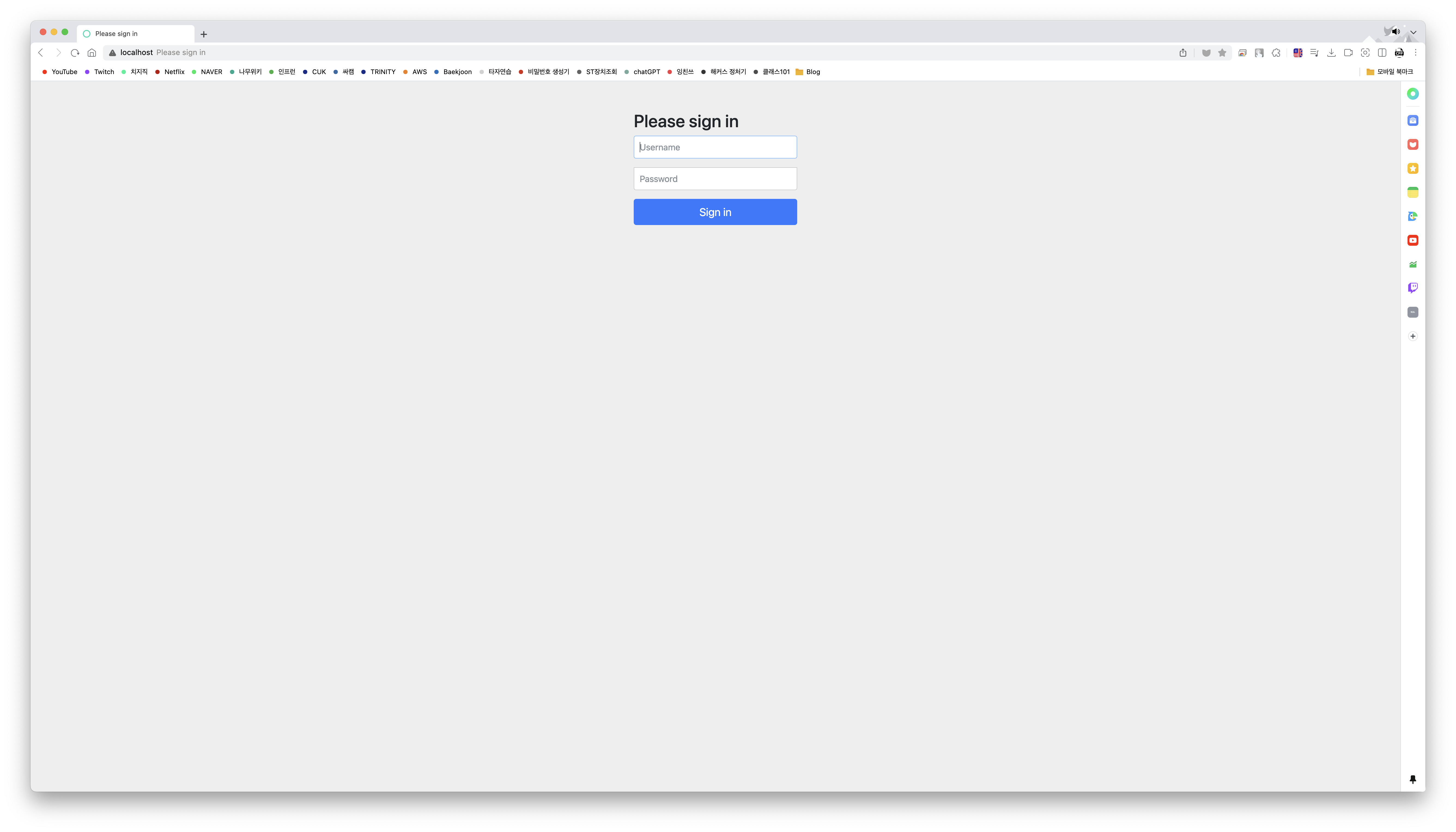 아무 페이지도 넣지 않았음에도 sing in 페이지가 나오는거는 spring security를 의존하고 있기 때문입다.