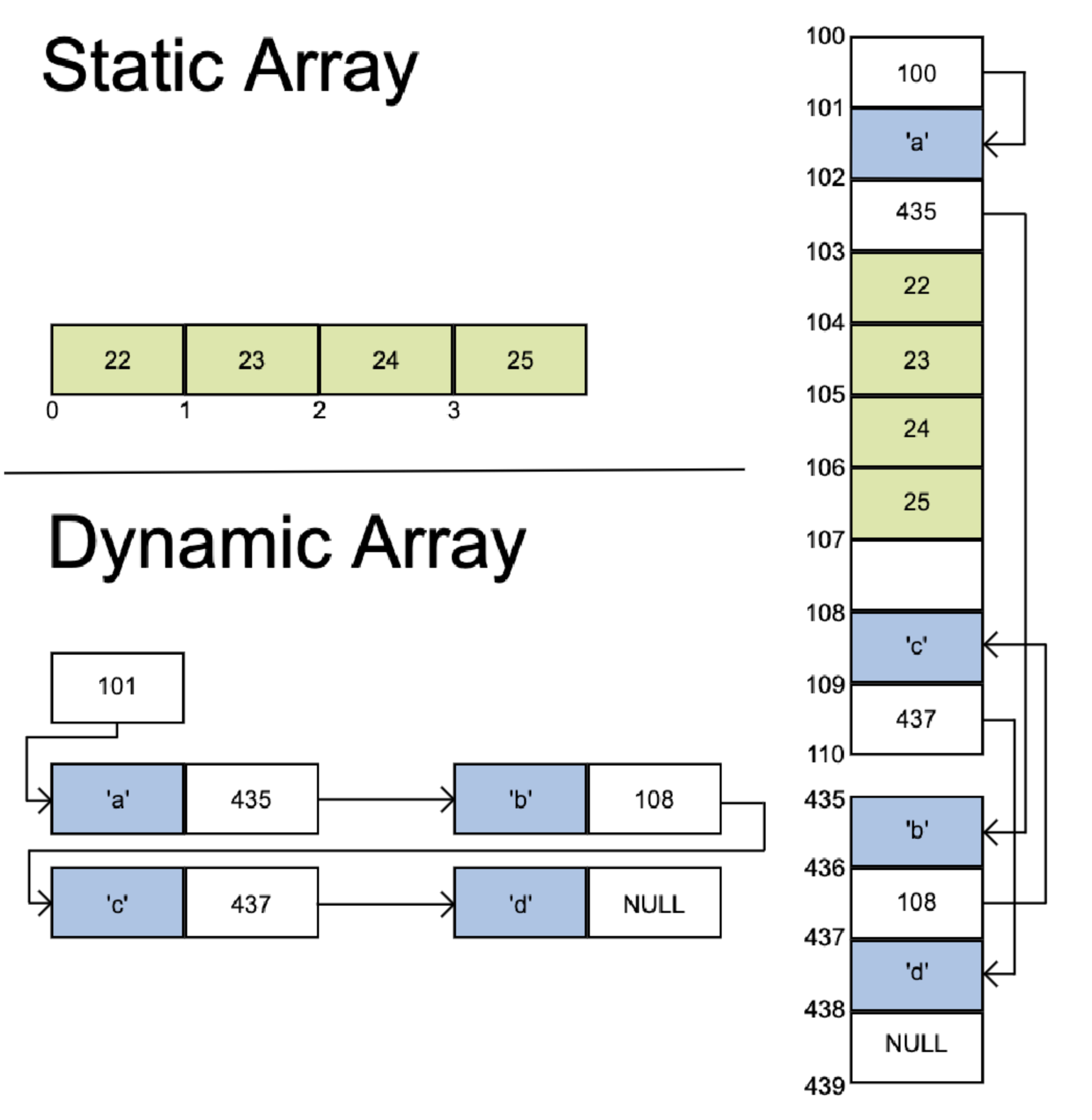 - 삽입과 삭제가 가능: 배열의 중간에 데이터를 삽입하거나 삭제하는 것이 가능하여 메모리를 효율적으로 관리 할 수 있습니다.