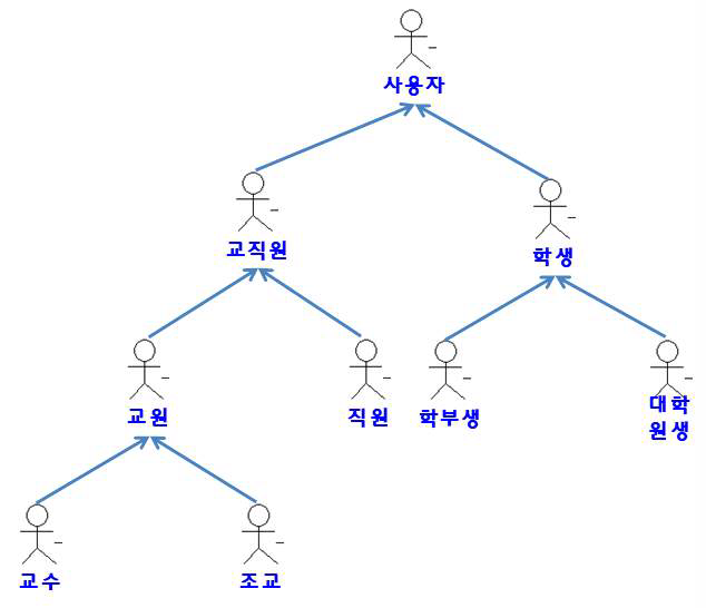 ▶ 학생이 사용 가능한 메뉴만 보여준다.학생은 ‘성적조회’메뉴를 선택한다. 시스템은 학생의 성적을 화면에 보여준다.