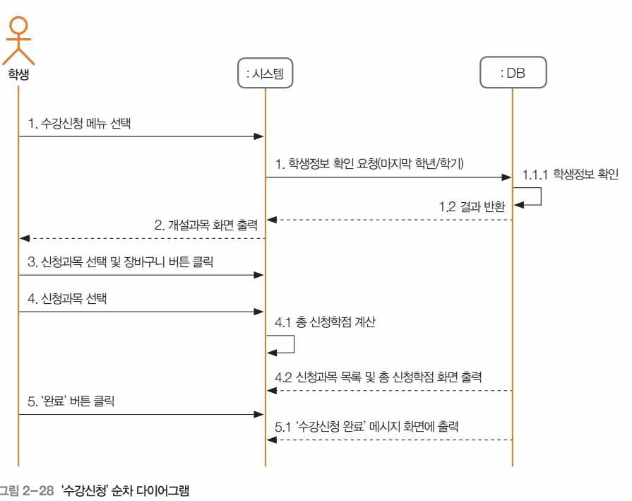 - 3) 오퍼레이션이나 처리 과정이 수행되는 동안 일어나는 일을 단계적으로 표현하고자 할 때 사용하는 다이어그램이다.
